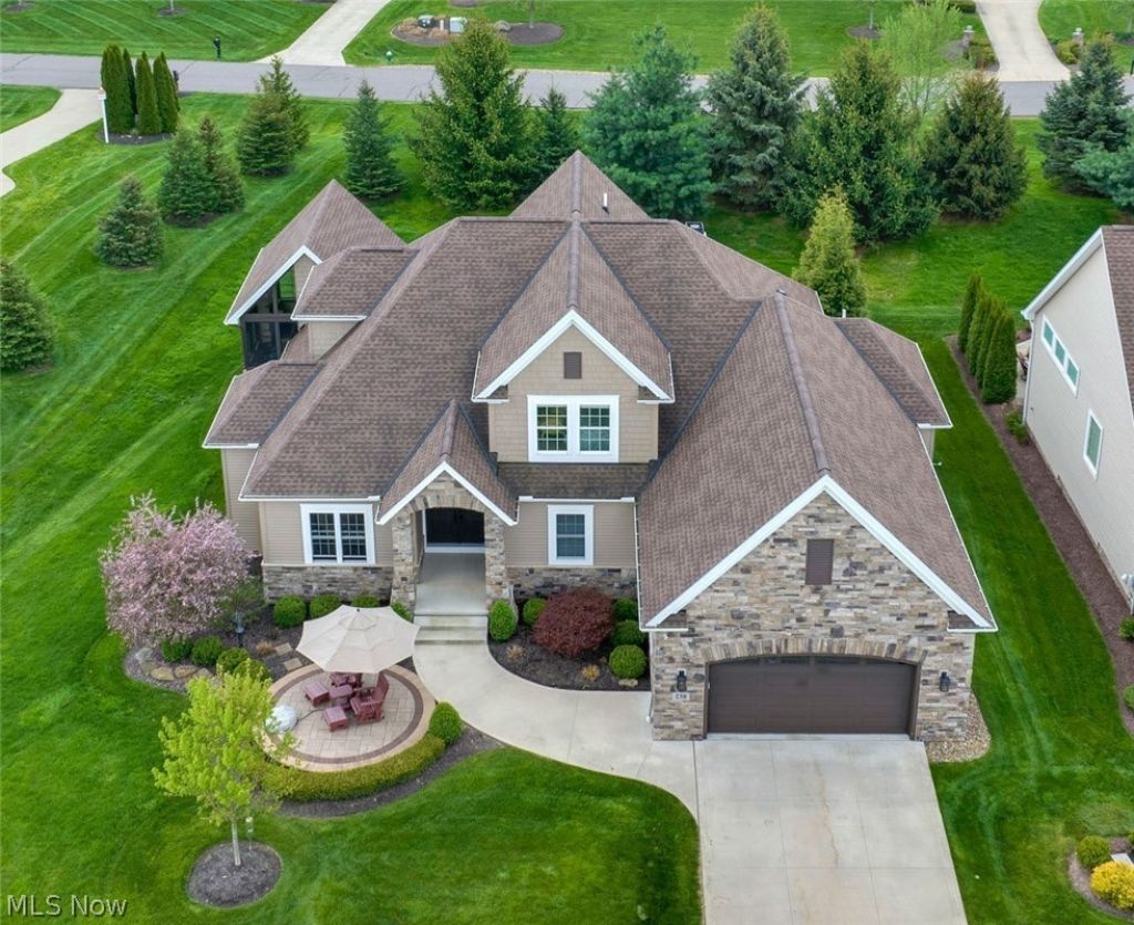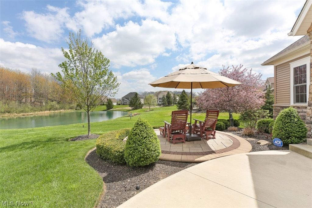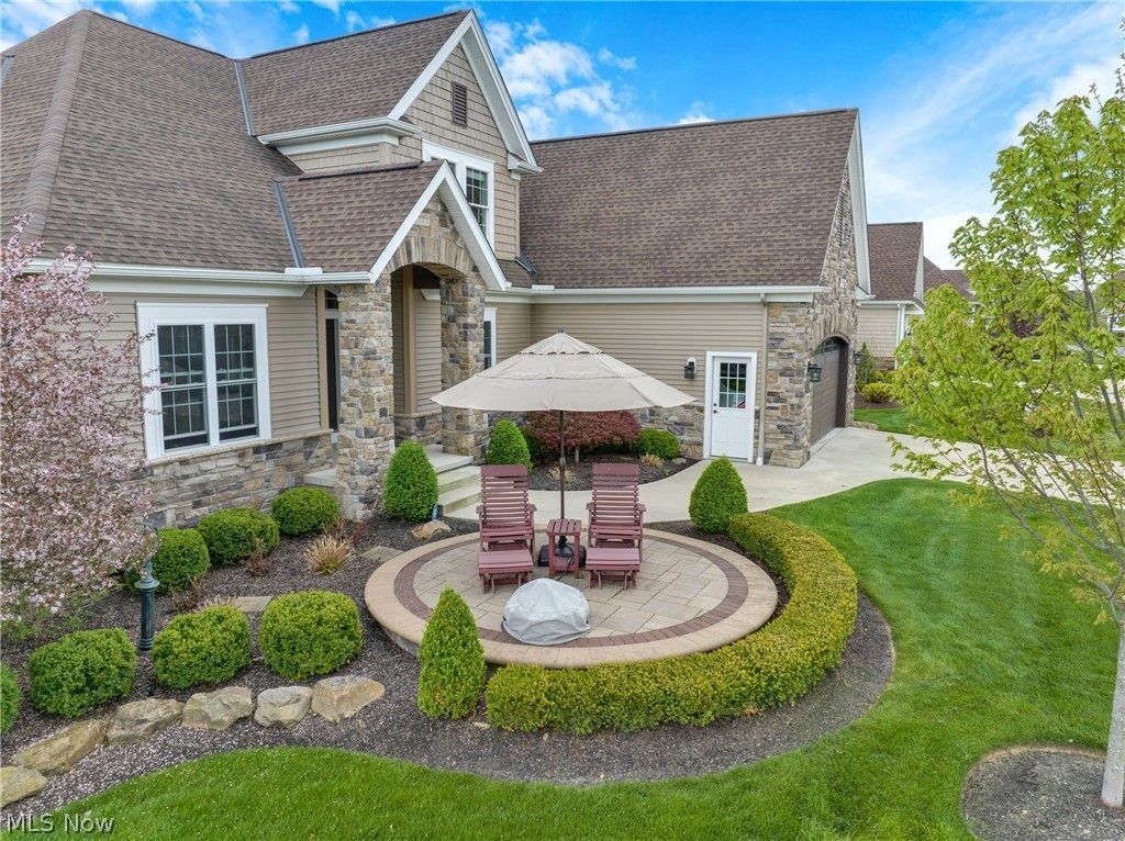 Welcome to this extraordinary custom-built retreat where luxury, comfort, and everyday living come together beautifully. Relax on the front patio overlooking the peaceful pond and enjoy the tranquil setting. From the moment you enter, the craftsmanship and thoughtful design are unmistakable. A gracious foyer opens to soaring ceilings and engineered hickory flooring flowing through the foyer, great room, kitchen, and owner's suite. The private office features a gas fireplace, custom built-ins, and walk-in closet. The stunning great room is the heart of the home with a dramatic stone fireplace wall, illuminated built-ins, and generous open living space. The kitchen is designed for gathering and entertaining with a large island, custom cabinetry, granite counters, walk-in pantry, and premium Thermador appliances including induction cooktop, double wall ovens, microwave, and counter-depth refrigerator. The dining area overlooks the outdoor living spaces. The incredible three-season room offers a cathedral ceiling, gas fireplace, and custom sliding windows that provide fresh air while protecting from the elements. Electric blinds across the rear of the home add convenience. The back hall to the garage includes a bench, coat area, and half bath. The owner's suite is elegant and serene with tray ceiling, cove lighting, gas fireplace, custom built-in storage, and oversized walk-in closet with separate spaces. The spa-like bath features a two-person shower with body jets and rain head. Upstairs offers two additional bedrooms, full bath, and spacious loft ideal for guests or relaxing. The daylight lower level is ready for your vision with oversized windows, egress, plumbing for full bath, and two tankless water heaters. Set at the end of the street, enjoy a private backyard with grilling deck, expansive patio, and pond views. HOA is $750 quarterly and covers landscaping, snow removal, property management, and reserve fund. Truly move-in ready and built to be experienced.